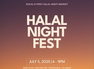Join us July 5th for a night full of halal food, drinks, and a packed bazaar β all in one spot. Think BBQ, tacos, burgers, shawarma, loaded fries, desserts, and more.